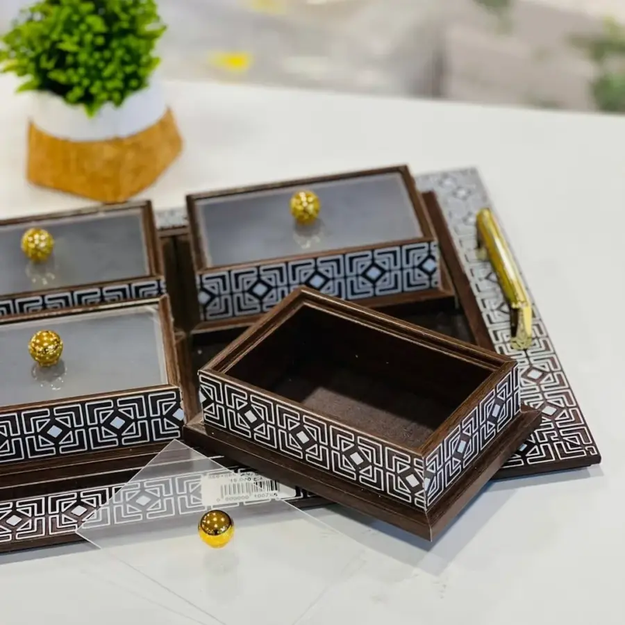 مضيفة خشب مستطيل 4 خانات غطاء اكراليك 4-400